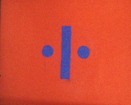 20 " x 24" Acrylic Painting on canvas board, can be hung sideways to convey the division symbol, or the way it is shown here, depicting the separation - wall - division. When I personally look at it I start thinking about things that divide people from each other despite their common humanity. Like most of the Meditation Circle series, it can be used to start meditation by gazing at the circle without blinking for sixty seconds. It will also produce some op art effects when viewed as a whole.